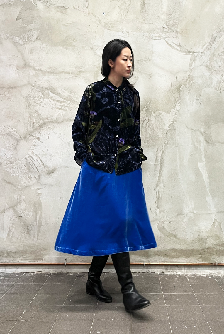 "Edera" printed silk velvet shirt with frontal natural corozo buttons closure. Straight fit. Made in Italy.