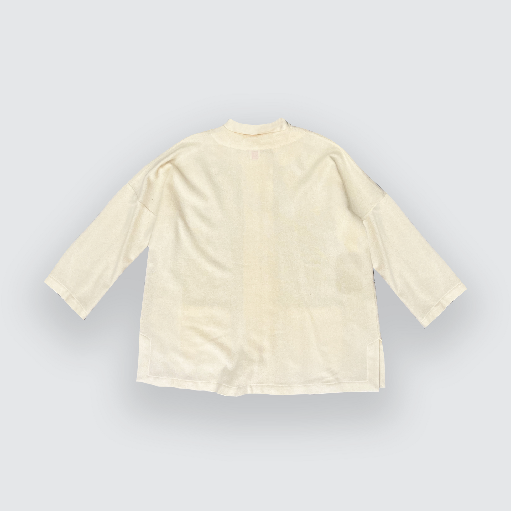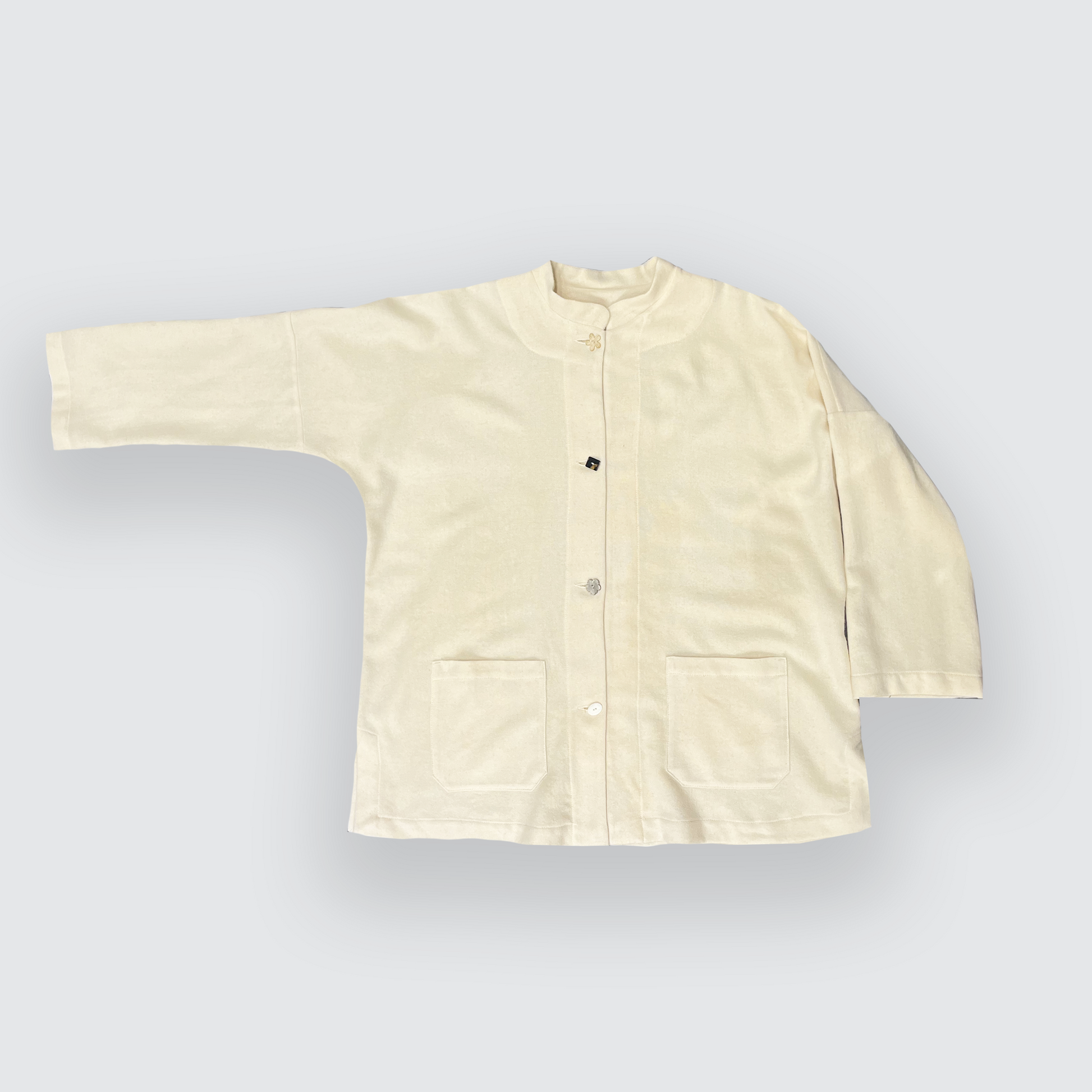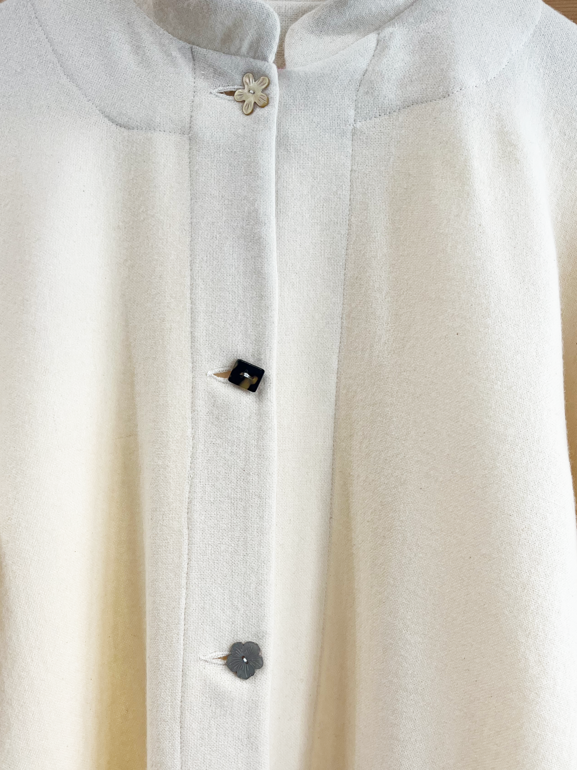 "Latte" pure yak wool jacket with frontal mixed different buttons, long sleeves and patch pockets. Wide fit. Made in Italy.