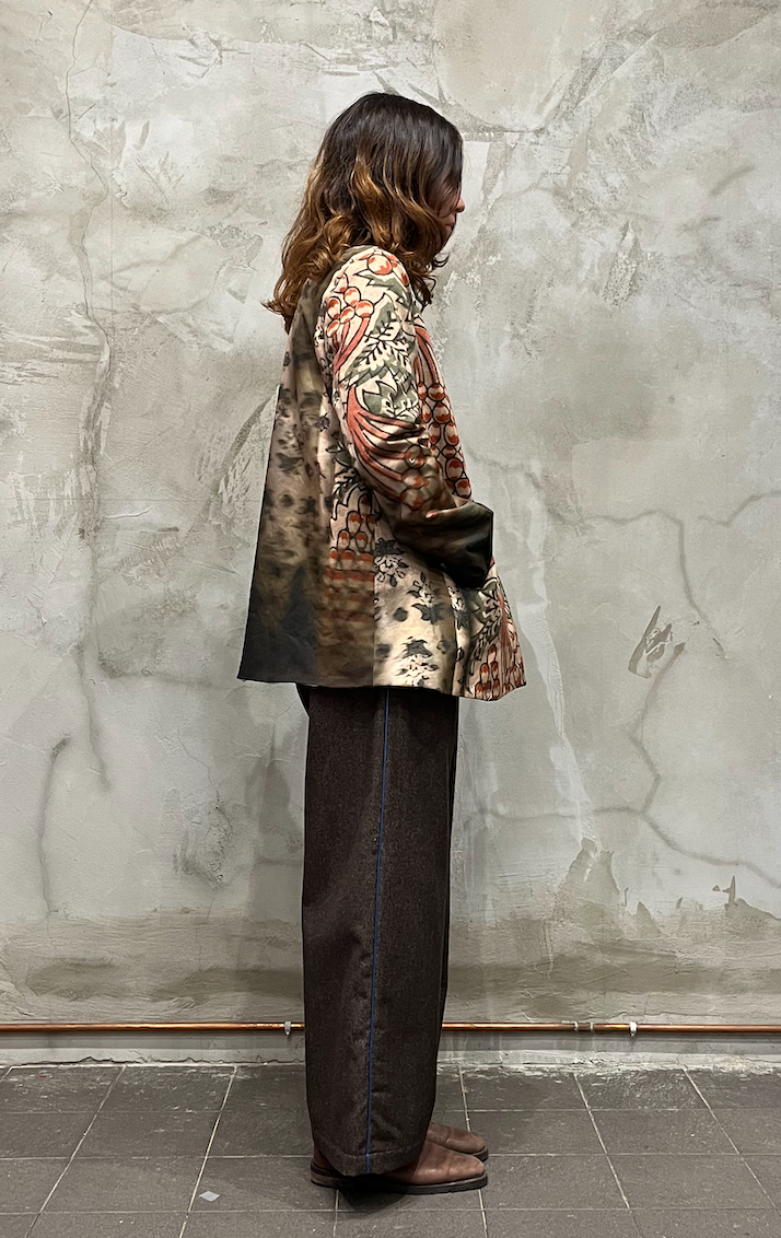 Since our pieces are unique the prints placement could be slightly different. Our archivio is made of unique pieces, you can contact us at info@colombaleddi.it to know more about sizes, colors and availability. On the website you can find both samples with a special price and seasonal item on sale. The worn pic is valid for the fit, not for the color.