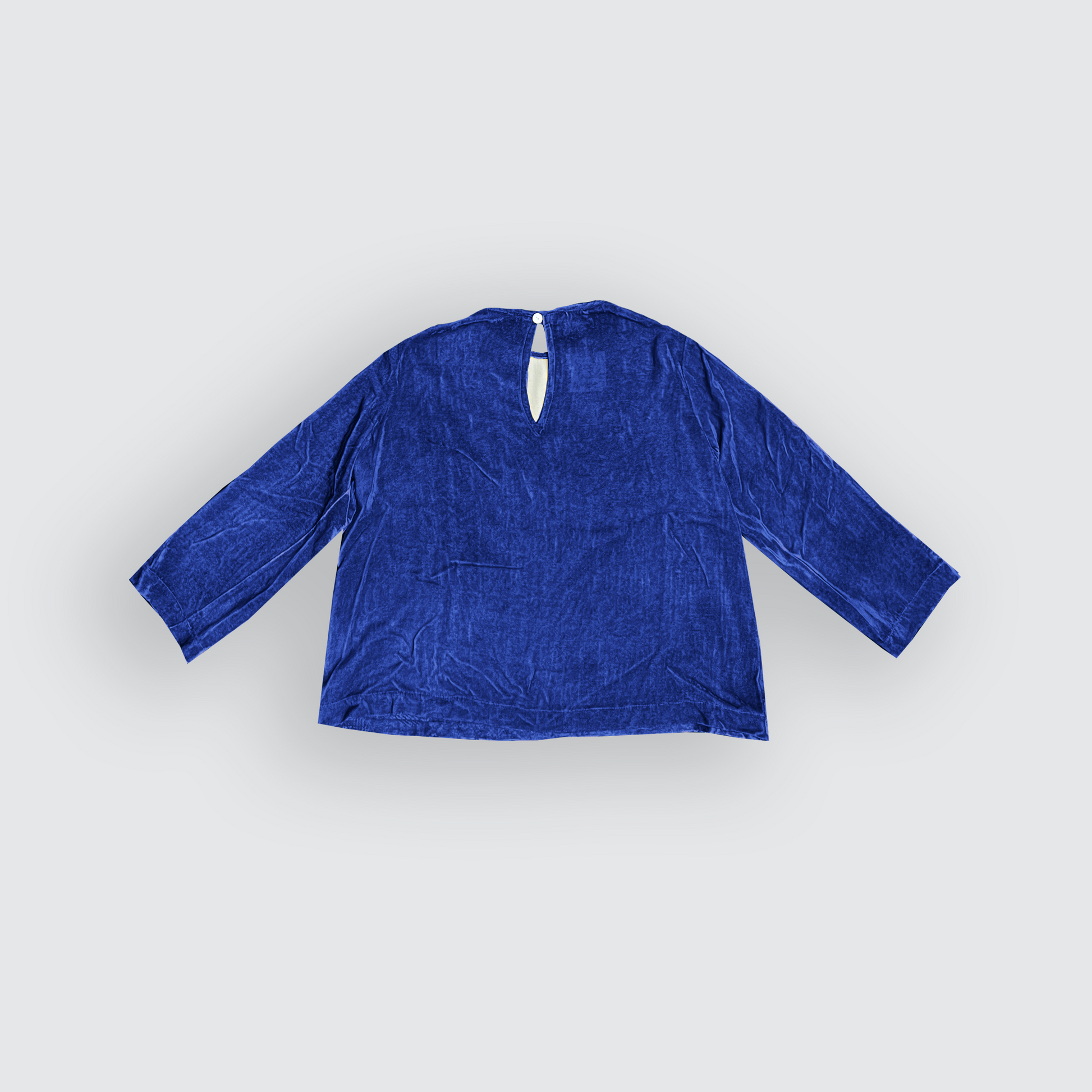 "Azzurro" silk velvet top with back drop closure. Regular fit. Made in Italy.