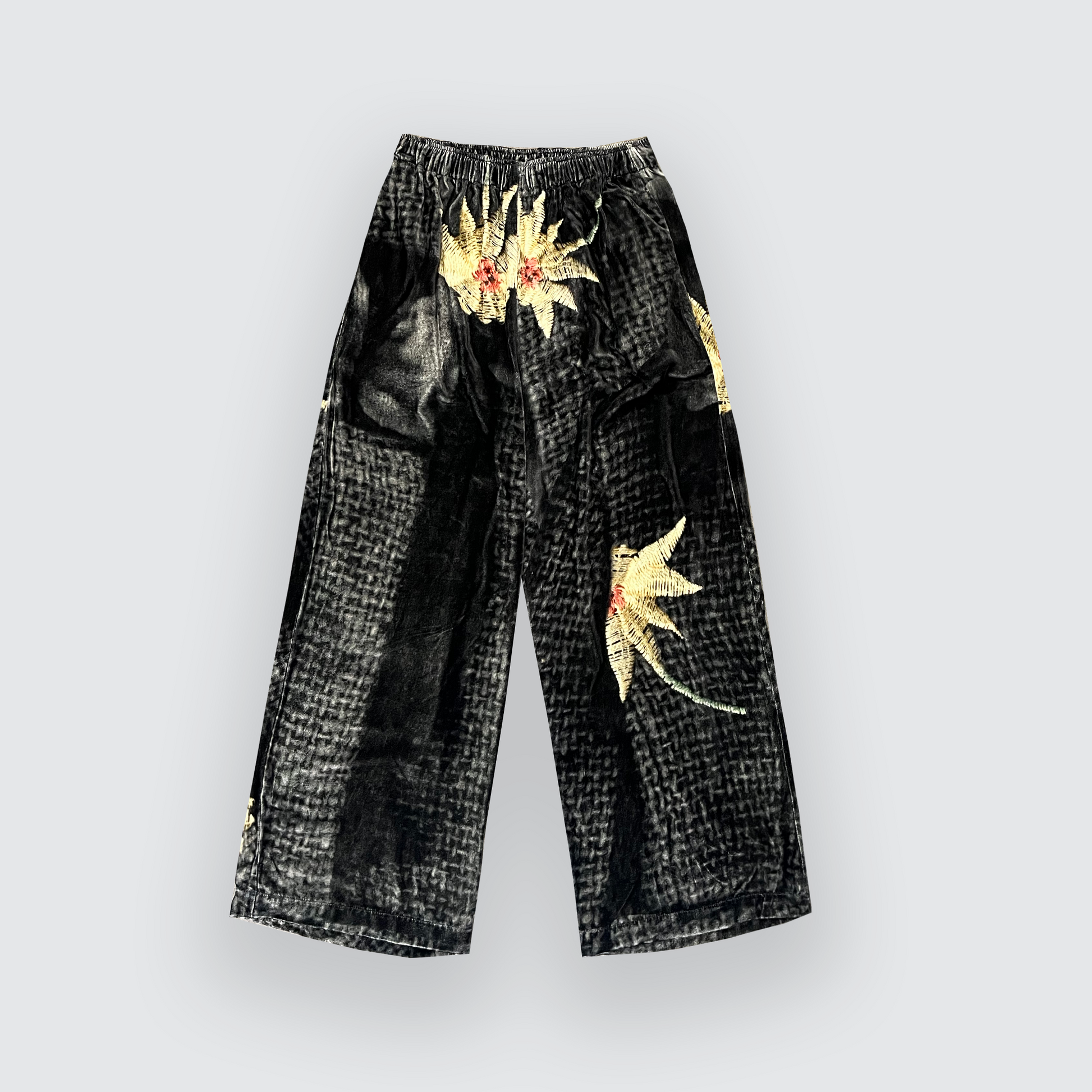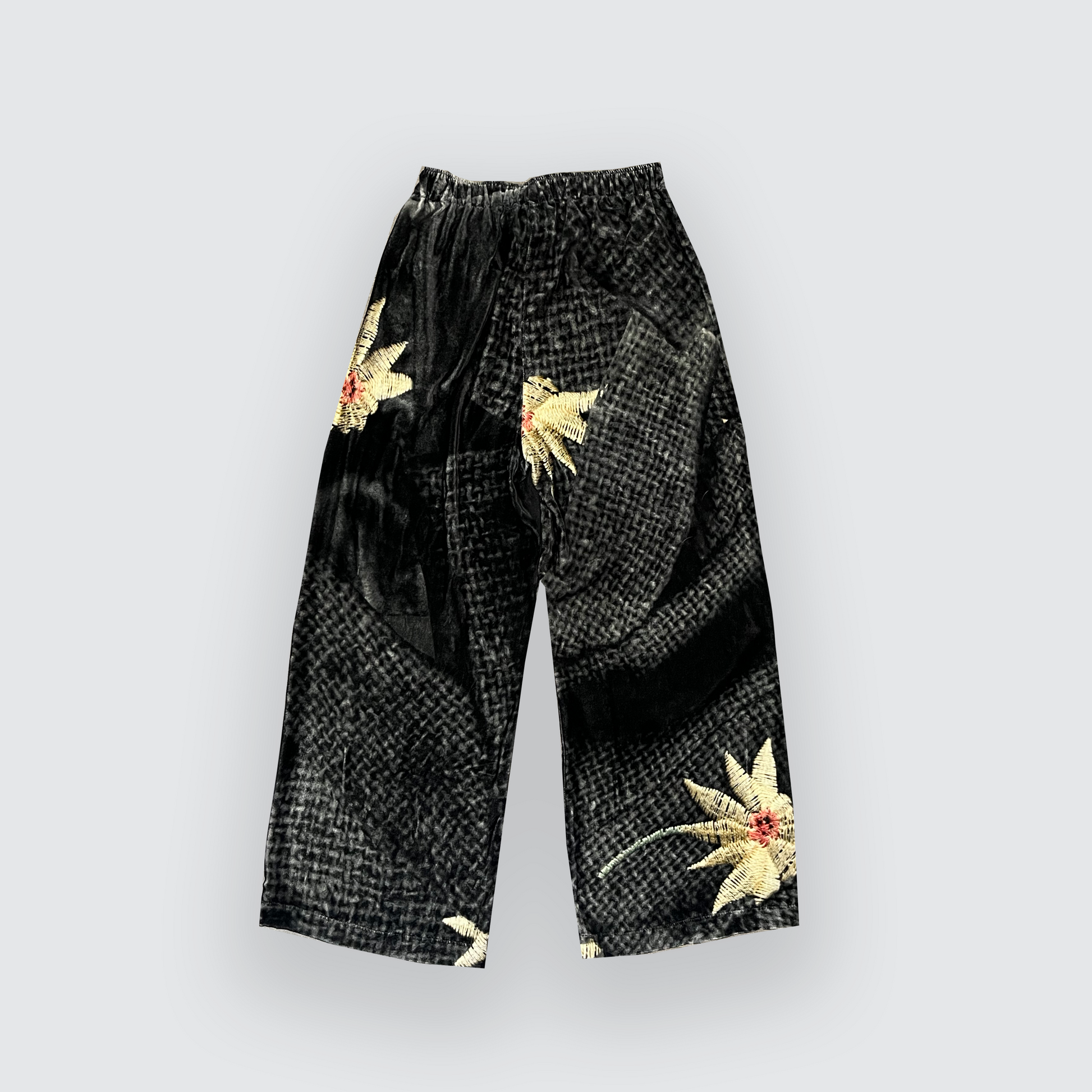 "Tailleur" printed silk velvet pant with comfortable elastic band on the waist and pockets. Regular fit. Made in Italy.