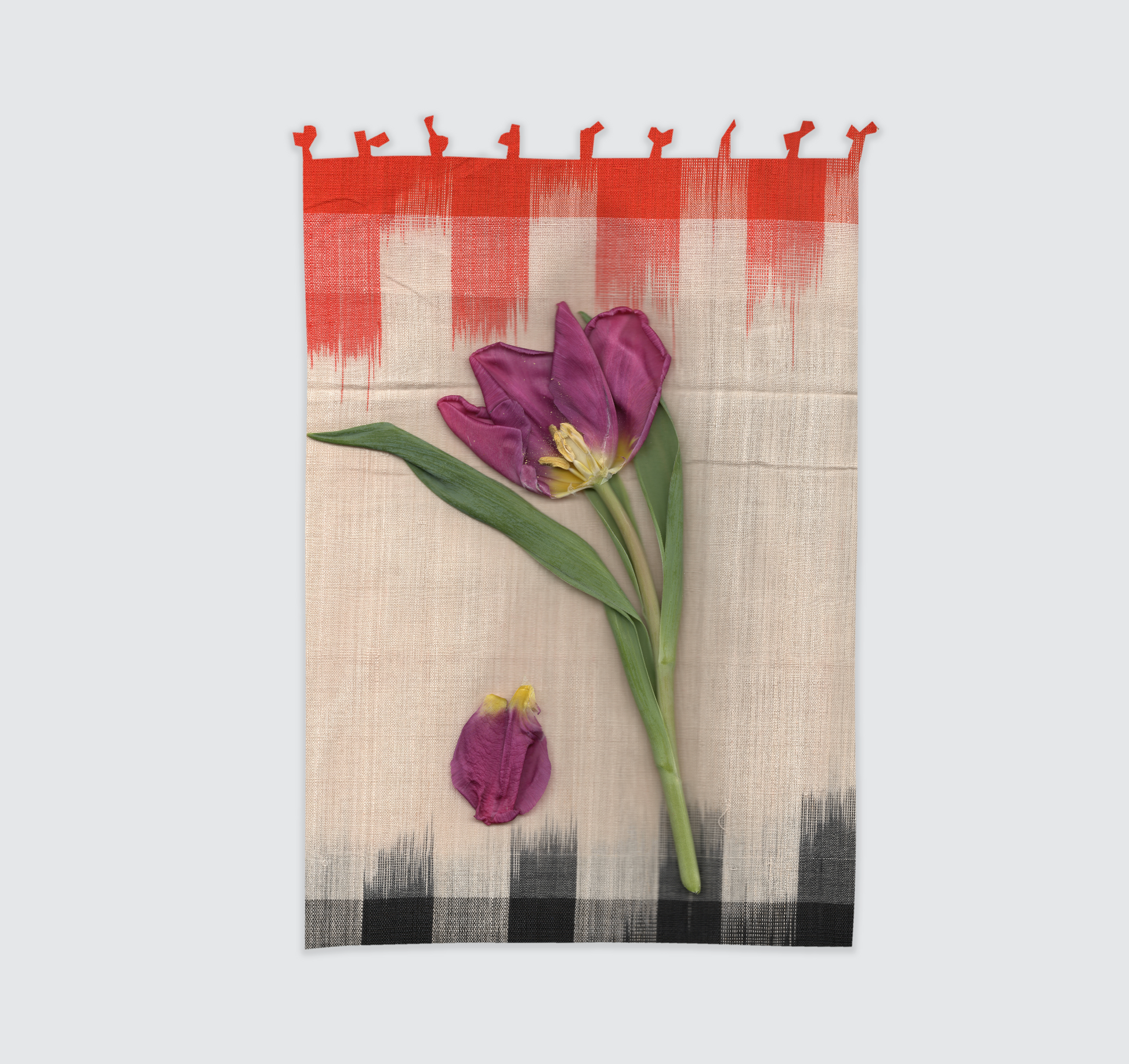 "Ikat" printed 100% cotton voile curtain with strings closure. Made in Italy.